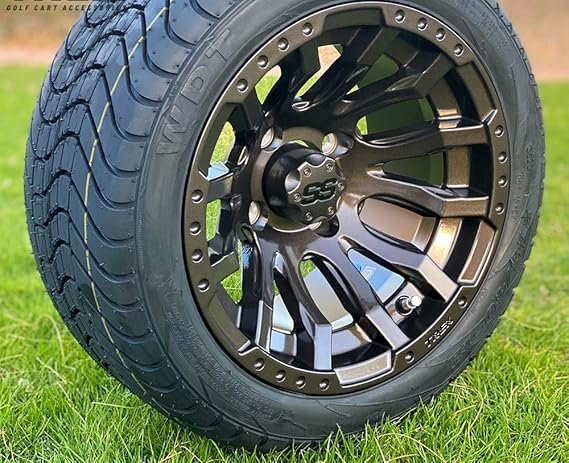 14 Inch Glossy Black Phantom Golf Cart Wheels & Tires Set of 4, 23×10-14 All Terrain Tires, DOT Certified Golf Cart Wheels Compatible